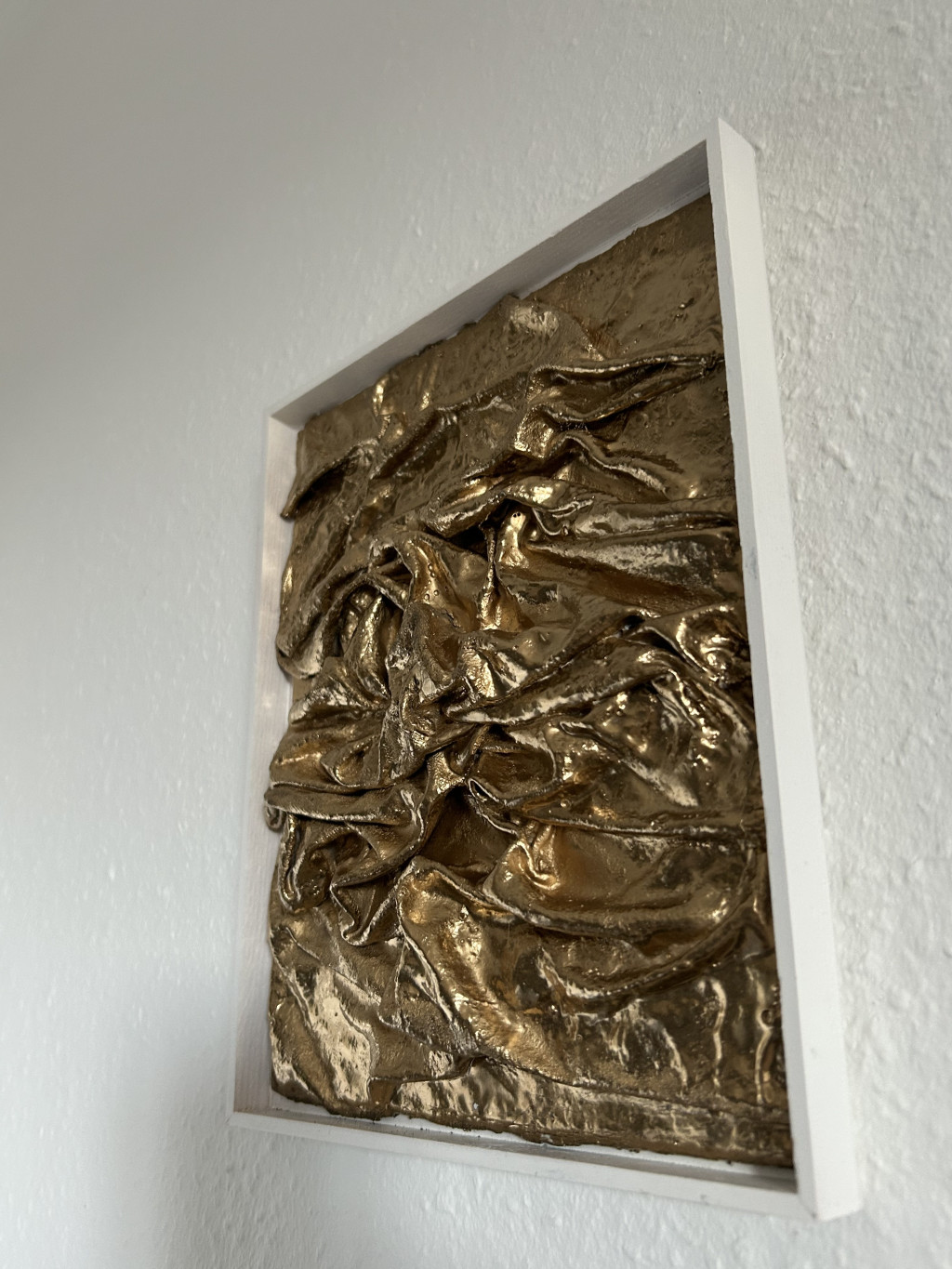 "Golden Waves " 22cm X 26,8cm akril kép,vegyes technika, fehér fenyőfa keretben.